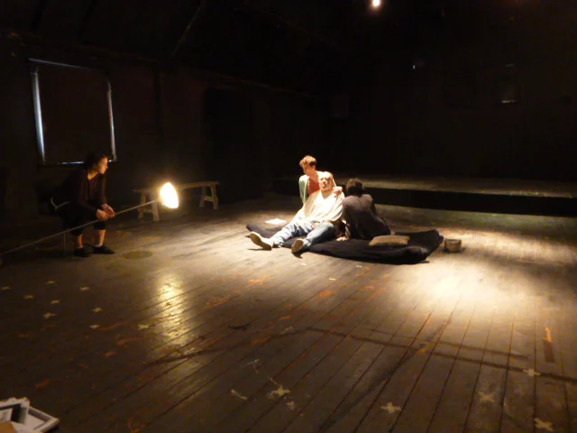 We spend some time on other exercises as well. We group together and improvise soundscapes. We play games to keep us sharp. But soon it devolves into scene work. Georges is unforgiving in the way he side coaches, yelling out directions from the front of the house to move now, find the internal state, make a proposition, and for the love of god, don’t go home! He communicates as best he can, but there are communications issues that even Bob, the dramaturg and temporary translator, can’t get past. There are a specific set of rules that he has to pound into us before a scene will go forward, and he will sometimes stop a scene even before a word has been said if you aren’t following those rules. After the first week, many of us are confused and frustrated. Fewer and fewer of us show up consistently.