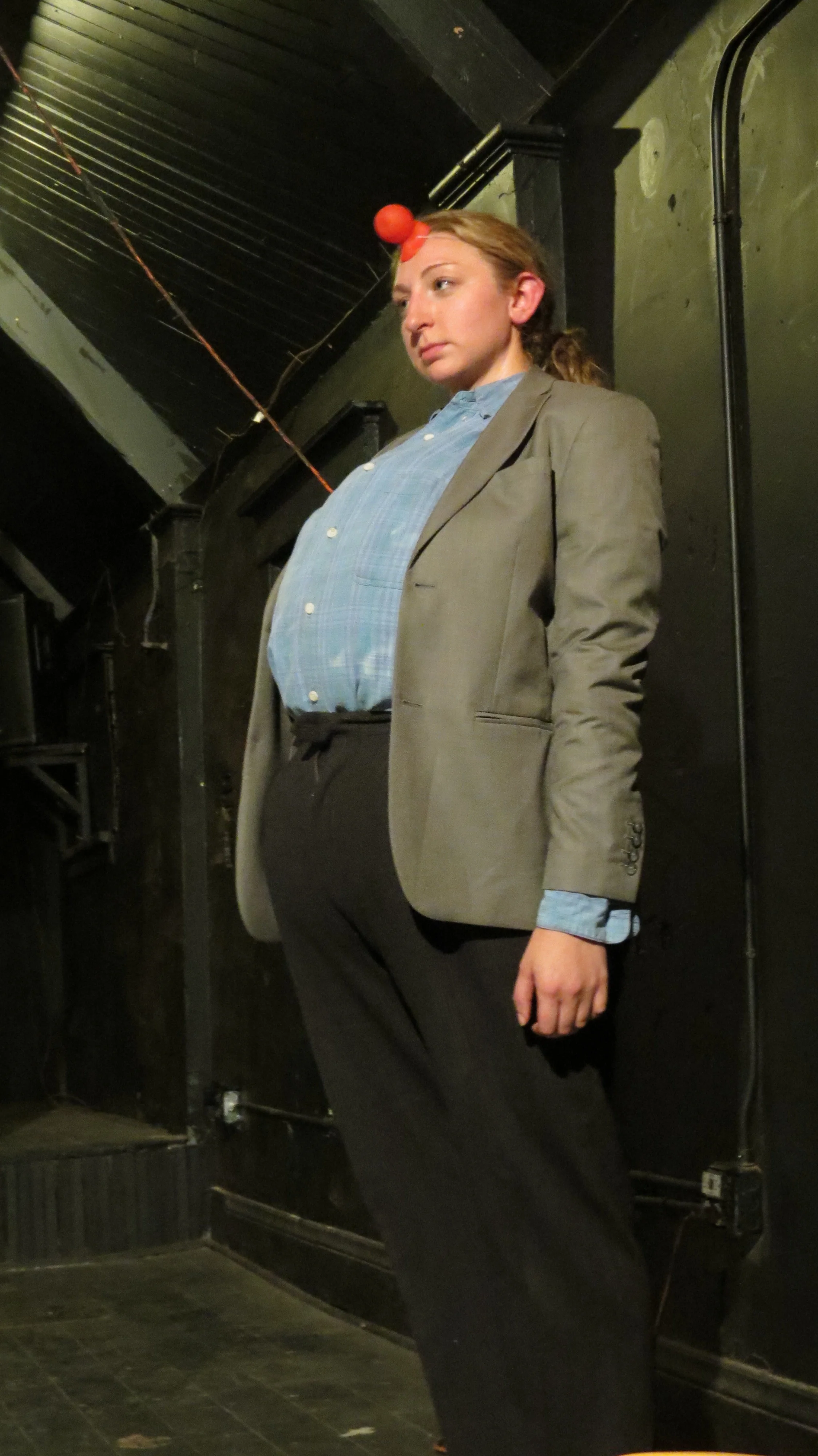 At the beginning of the process, many of us were intimidated by Georges and by each other. But now we hang to each other like drunk sailors on the risers, watching whoever it is gets to perform that day. Going on becomes an act of being present. If it be not now, tis not to come; if it be not to come, it will be now; if it be not now, yet it will come. The readiness is all. If you can free yourself enough to get through a scene without Georges stopping you, you will be rewarded with a small cry of “Yes!” as he leans toward the stage. He reminds me of man people in the evangelical tradition, who vocalize their assent during prayer. But to him, I think, Theatre is a sort of prayer. It is good that we are working, at least for now, in an old worship area in the back of St. Luke’s, where you can see the arched windows and a cross or two even underneath the black paint.