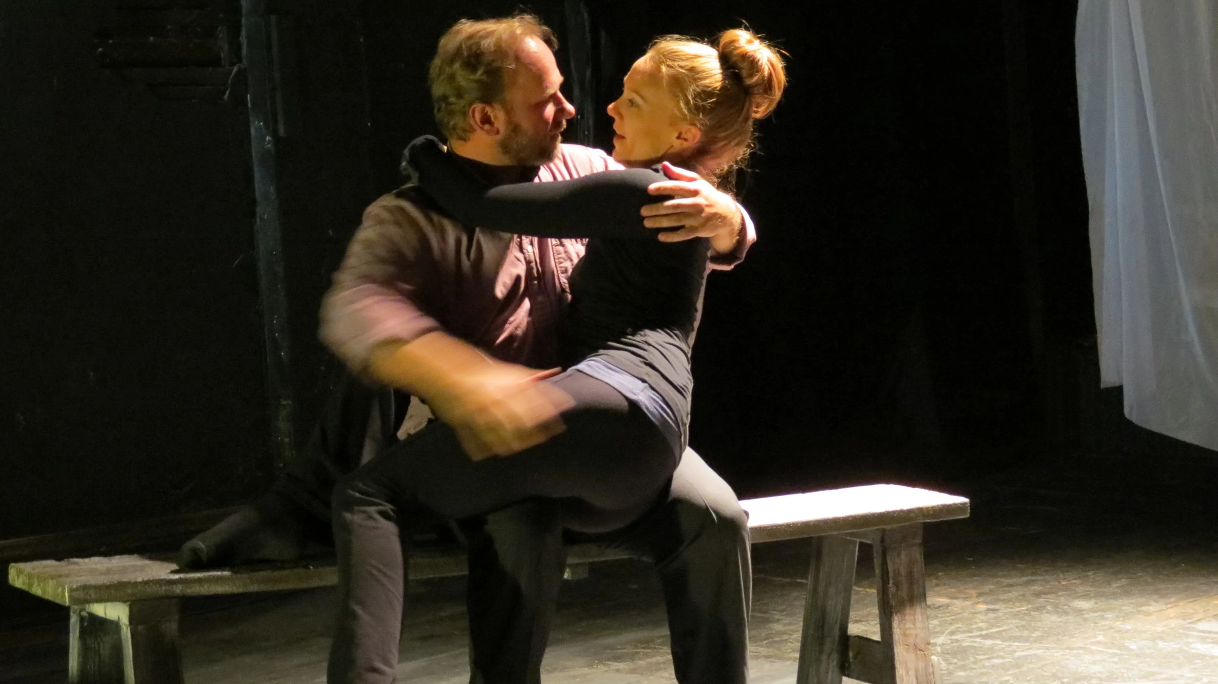 As the work progresses, more and more of us are able to find our way in the charnel theatre space. We grow more comfortable with Georges, and each other. But as soon as we reach a plateau, Georges Sweeps the rug from underneath our feet and tells us that we have to go deeper. You give him an inch and he wants a mile. Each scene goes through a hundred different versions of itself. The three witches from Macbeth dance in on the blasted heath to Little Darlin’ by the Diamonds, a do-wop band from the late fifties.